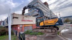 Watch: Demolition of Norwich's Anglia SquareWed, 12 Nov 2025 14:41:14 GMTRubble falls past an Anglia Square sign as heavy machinery begins to demolish the shopping precinct.
